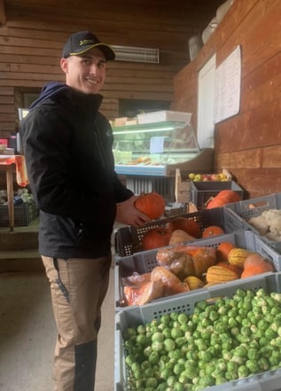 En fait (pas si petit, il fait bien 1m 80)! il s'appelle Johan Thelisson, fils de Nathalie et Didier, maraîchers et producteurs de boeuf à Plein Champ... il vient tout juste de rejoindre le Gaec des 4 saisons.